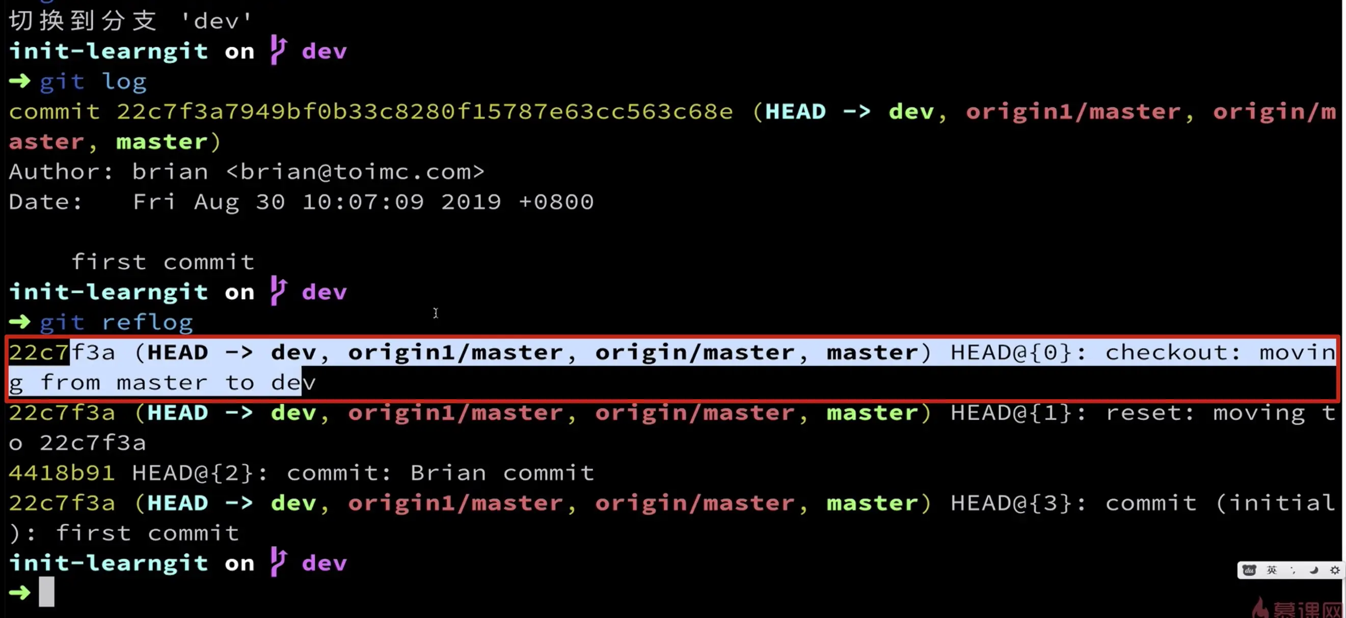 git checkout dev // 切换到dev分支