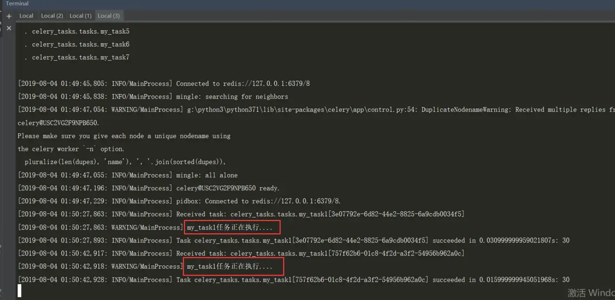 [2019-08-04 01:42:01,568: WARNING/MainProcess] my_task5任务正在执行....