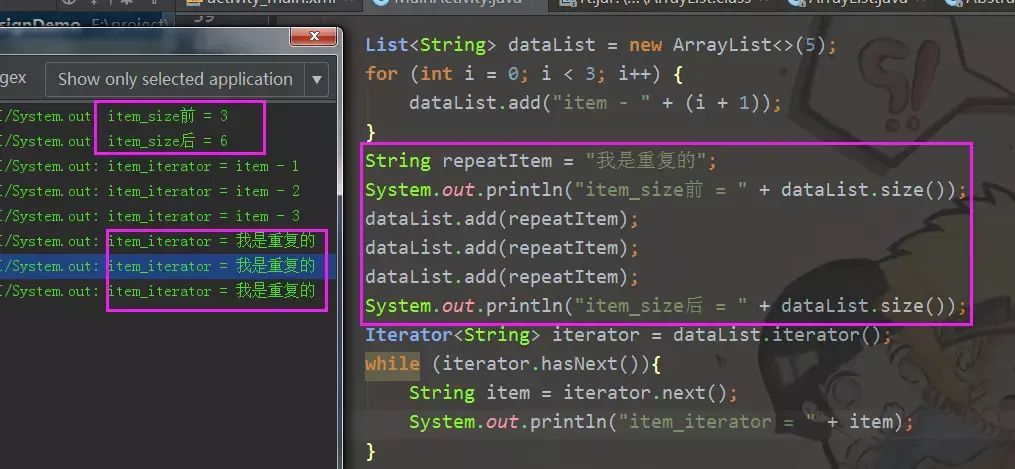 Log.e(TAG,"ArrayList remove cost time :"+(end-start));