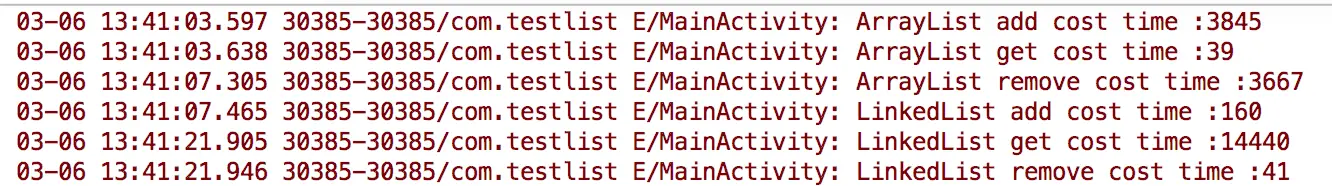 Log.e(TAG,"ArrayList get cost time :"+(end-start));