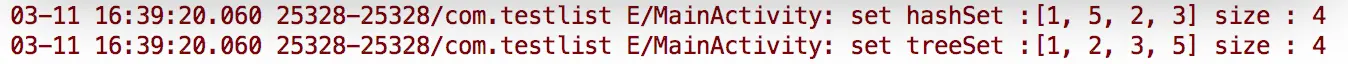 Log.e(TAG,"set treeSet :"+treeSet +" size : "+treeSet.size());