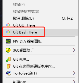2. 在需要的文件夹下按住shift键右击,打开git bash here,如下:
