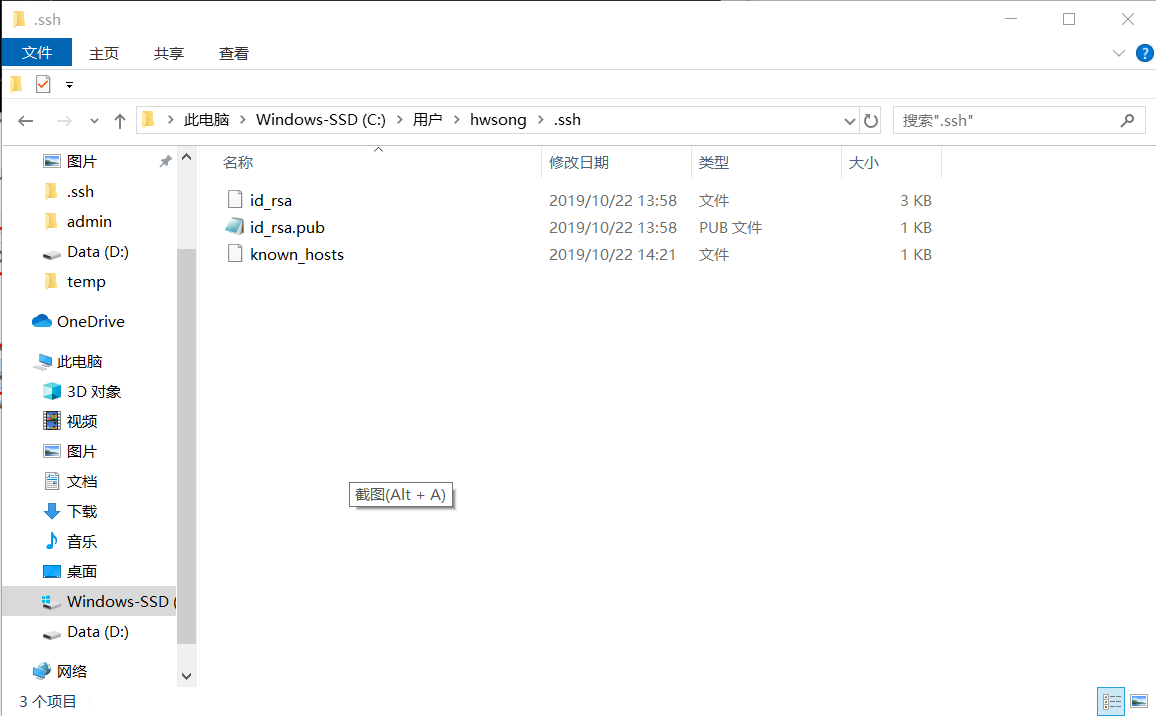 4. 找到id_rsa..pub文件,以记事本方式打开复制内容,文件路径如下图所示: