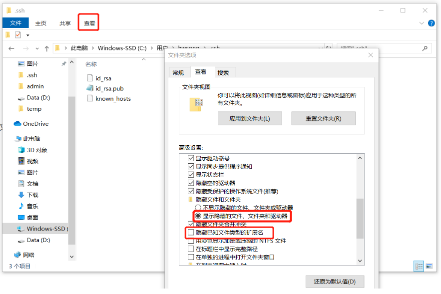 如果找不到这个文件,在查看-选项-查看 中取消勾选隐藏已知文件的扩展名,和勾选显示隐藏的文件;