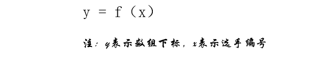 实际上,这个例子已经包含了散列思想了。在这个例子中,选手编码 x 和数组下标 y 可以组成的表达式: