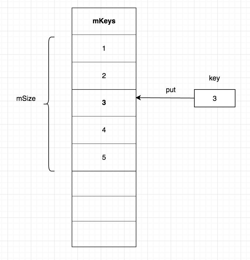 mKeys = GrowingArrayUtils.insert(mKeys, mSize, i, key);