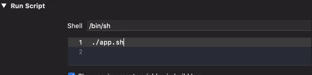当然 , 你可以直接在 Run Script Phase 里写完这些 shell , 也可以写到一个 app.sh 脚本文件中 , 然后在 Run Script Phase 里写一个 ./app.sh 即可 .