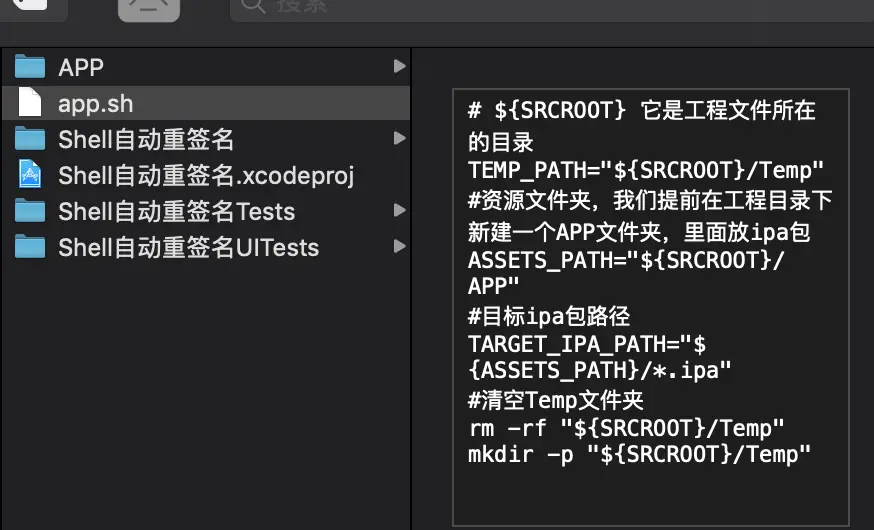 准备好已经重签完的工程 或者上述 准备好了 shell 和 ipa 的工程.