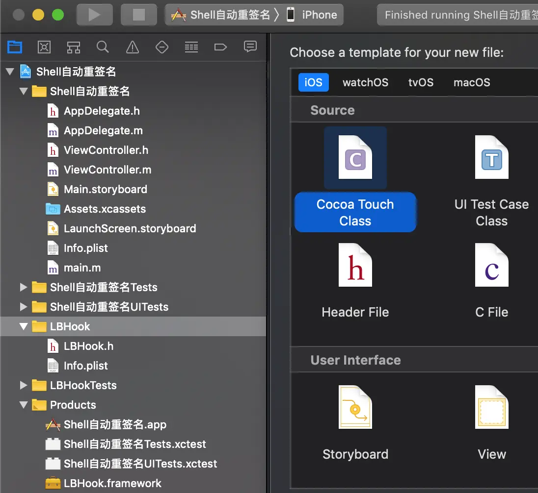 File - New - Target 选 Cocoa Touch Framework , 我这里取名 LBHook