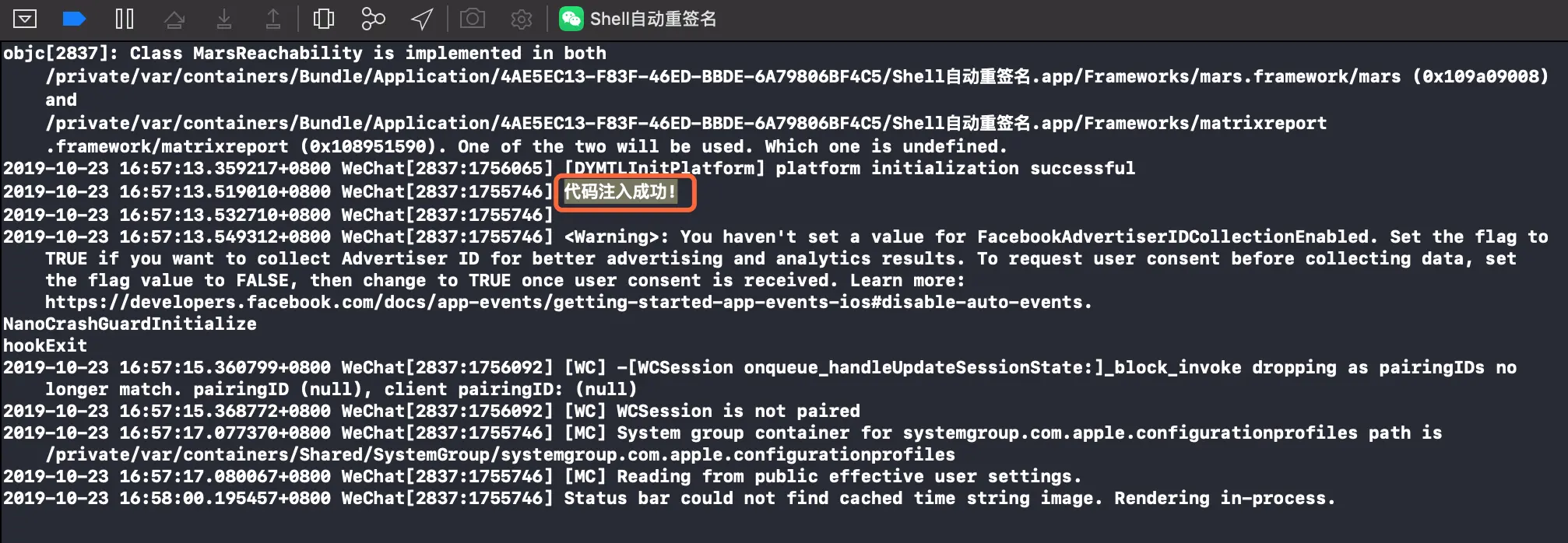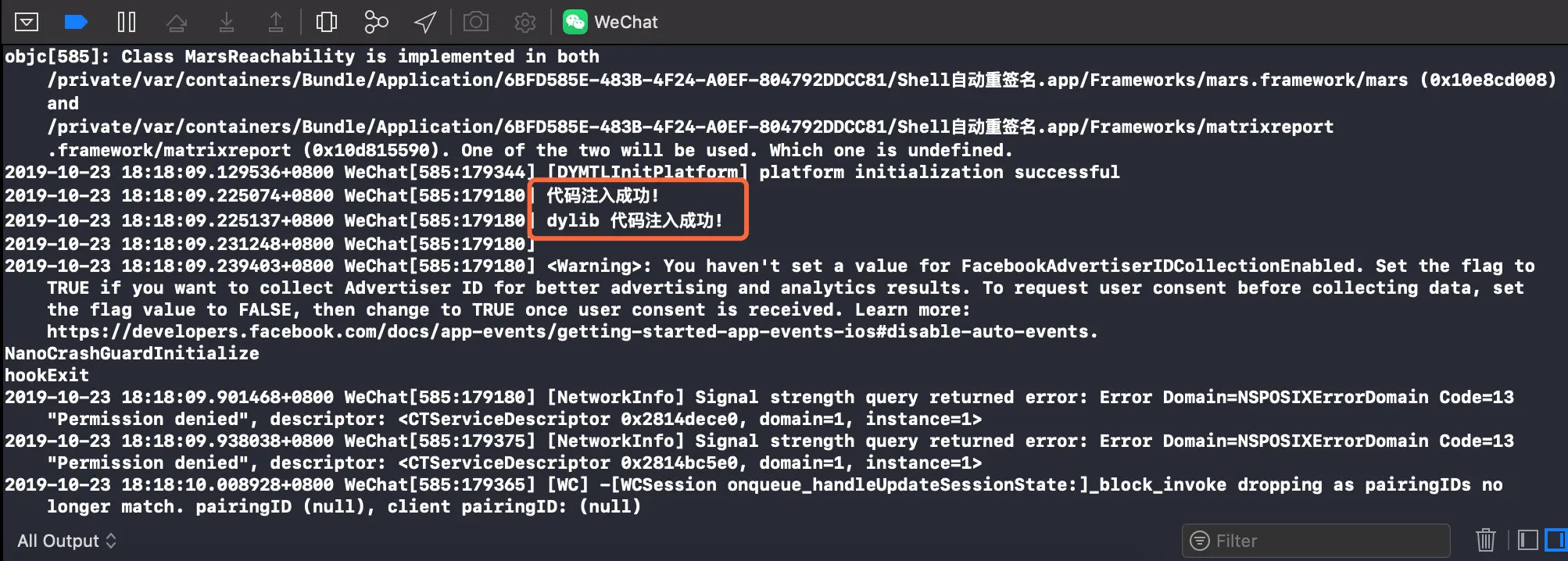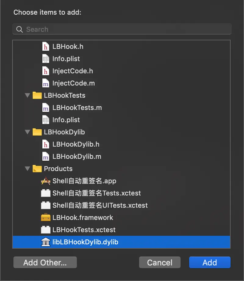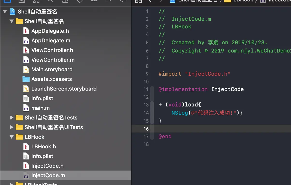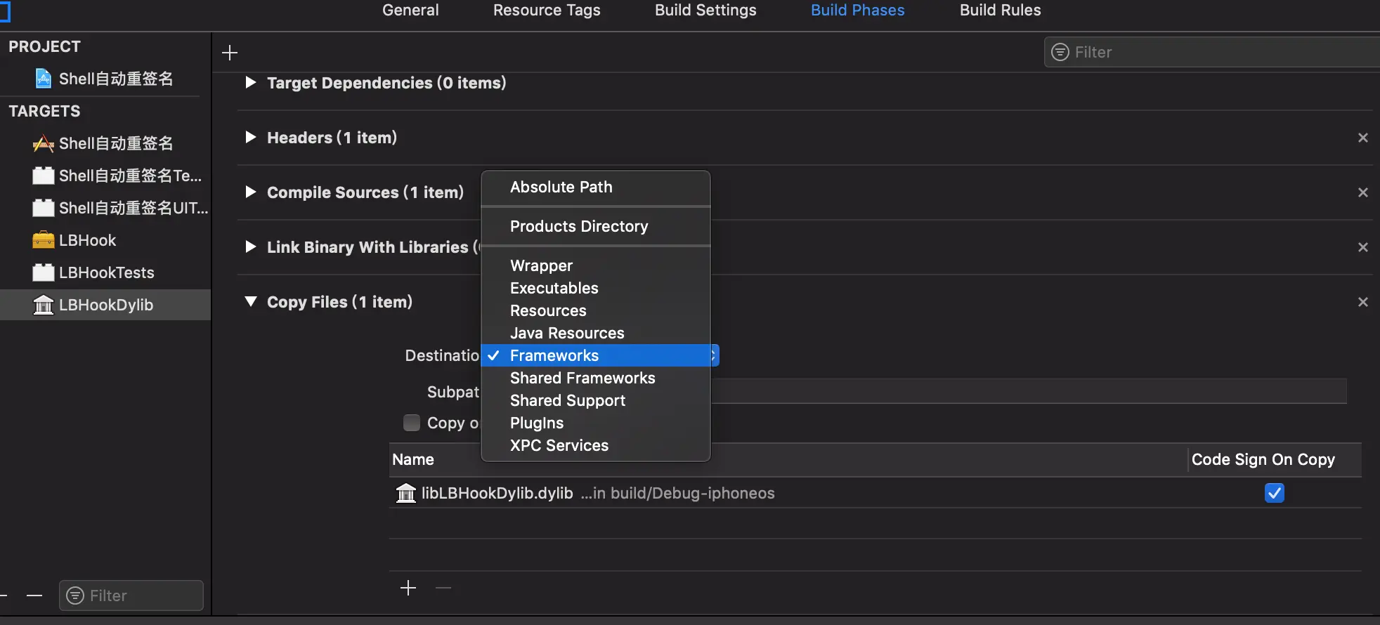shell脚本中最后一行多加一句yololib "$TARGET_APP_PATH/$APP_BINARY" "Frameworks/libLBHookDylib.dylib"