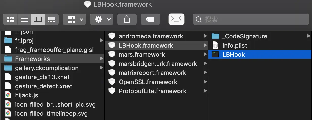 APP路径下的ipa包 , 改为zip, 解压 ,Payload里的包 , 显示包内容 , 找到Mach-O. yololib Wechat Frameworks/LBHook.framework/LBHook- 修改完毕后 重新压缩 使用