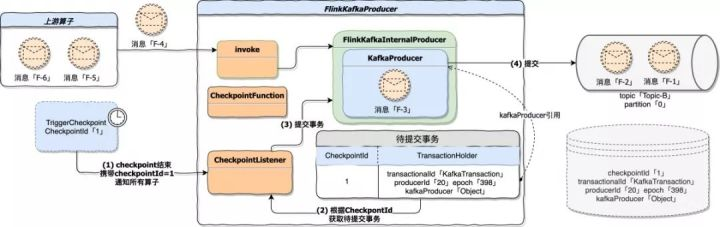 下面我们结合 Flink 运行时 和 故障恢复 两个不同的处理时机来了解 Flink Kafka Producer 内部如何工作。