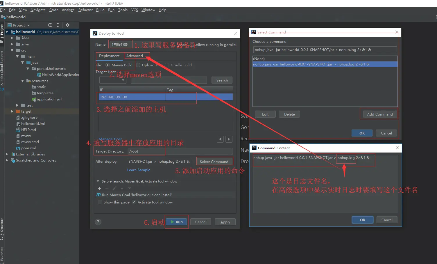 打开部署到主机的配置面板