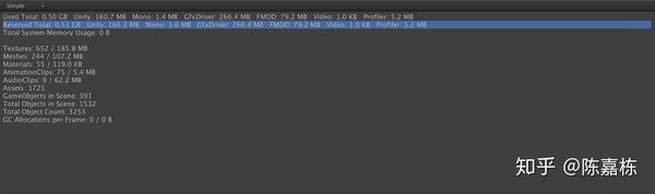 也就是说Unity的代码分配的内存,Unity是会进行记录的。但是我们可以看到除了Unity的代码本身分配的内存,还有很多framework或者第三方library也会分配内存。但是这部分内存,Unity的Profiler是不会记录的。