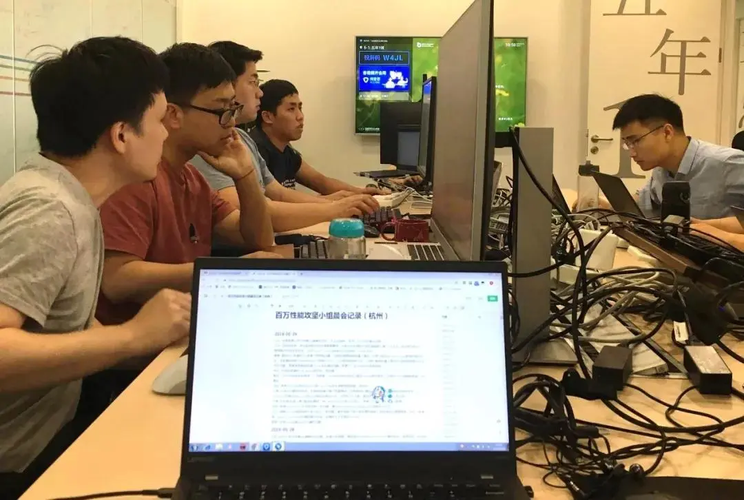 从拿到正式测试的大规模集群开始,大家就开始连轴转。曹晖天天在群里“钉”人,他盯着200多台云服务器的运行,只要发现问题,马上“钉”到对应的同学,被“钉”的同学无论在杭州还是北京,第一时间抄起电脑就冲到闭关室。