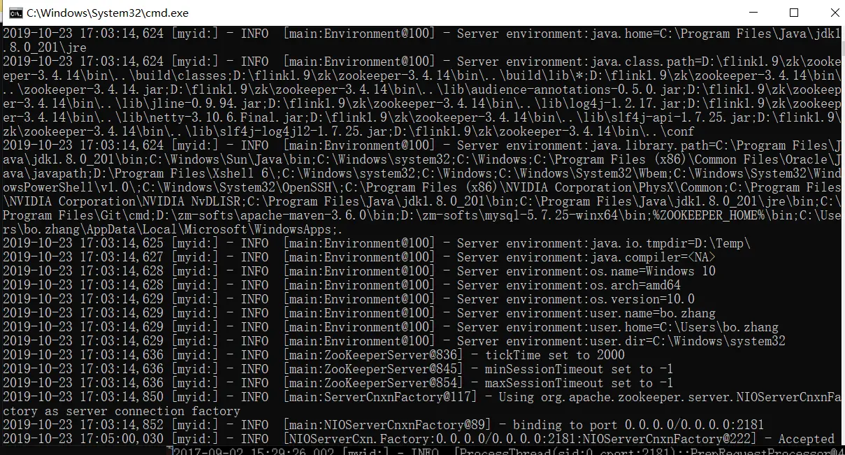 9、 命令行提示如下:说明本地Zookeeper启动成功