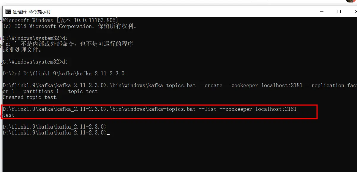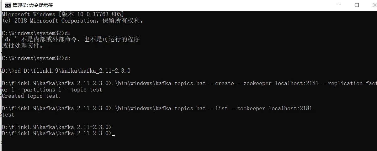 .\bin\windows\kafka-topics.bat --create --zookeeper localhost:2181 --replication-factor 1 --partitions 1 --topic test