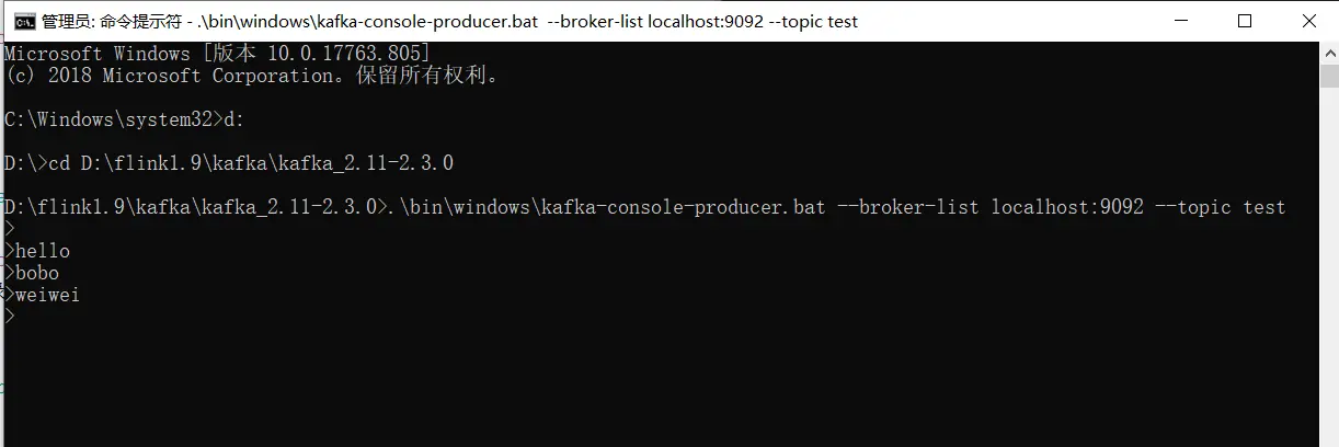.\bin\windows\kafka-console-producer.bat --broker-list localhost:9092 --topic test