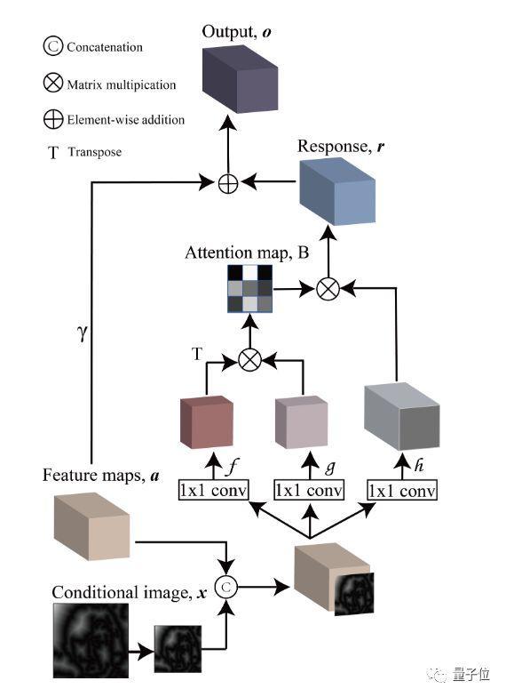给定来自上一层的线条图和特征图,条件自注意力模块会以自注意力机制计算输出新的特征图。