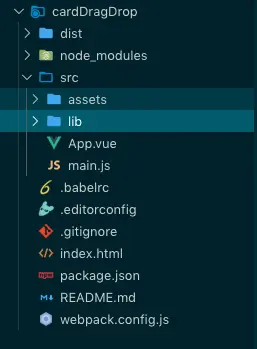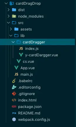 1、初始化插件项目:vue init webpack-simple ycarddragedrop,目录结构如下