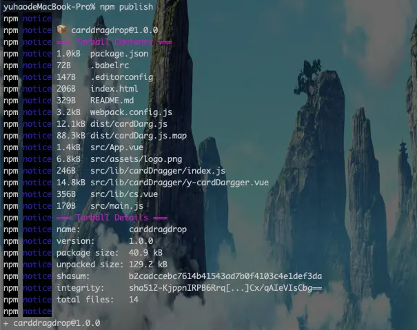 最后等10分钟后去别的项目引用 命令:npm install --save-dev carddragdrop (carddragdrop是你上传后的包名) 之后在你的项目main.js 中 improt 导入进来