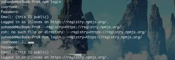 4、发布到npm上。首先先登录并邮箱验证。命令:npm login 之后输入你的账号、密码、邮箱。(如果没有账号则去npm官网注册:www.npmjs.com/)