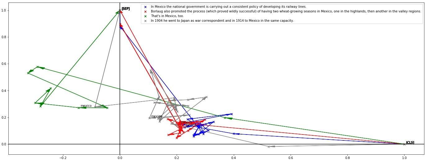 另外再来看一下同一个词Mexico在不同语境下的表示: