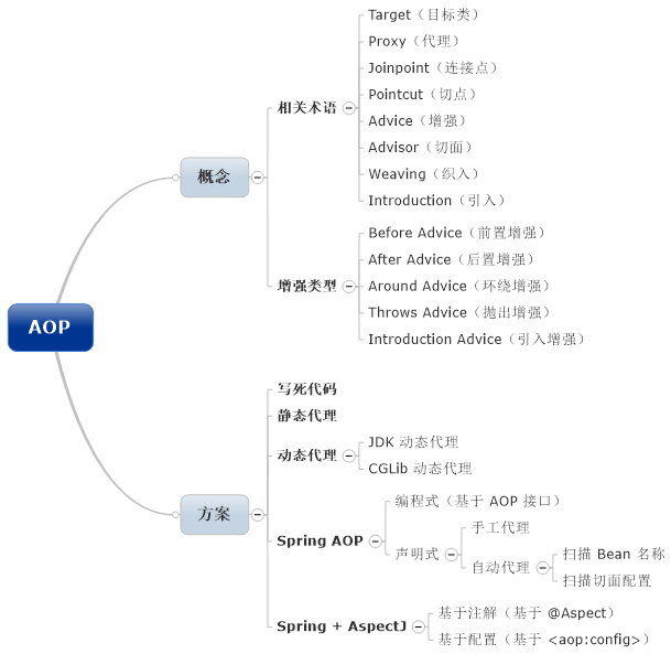 | 增强类型 | 基于 AOP 接口 | 基于 @Aspect | 基于 <aop:config> |