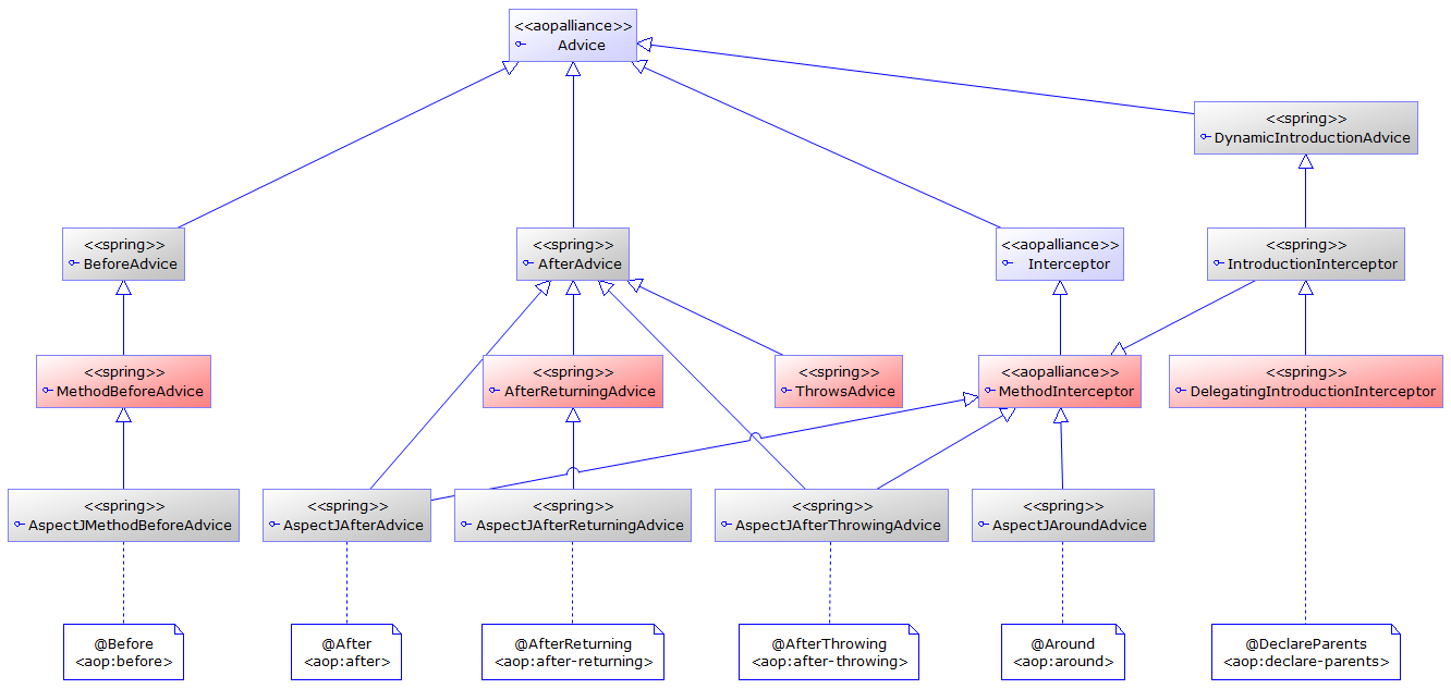 最后给一张 UML 类图描述一下 Spring AOP 的整体架构: