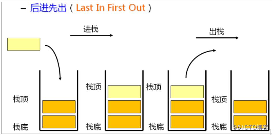 栈,是限定仅在表尾进行插入和删除操作的线性表,允许插入和删除的一端称为栈顶,另一端称为栈底,有着后进先出(last in first out,简写LIFO)的特性。