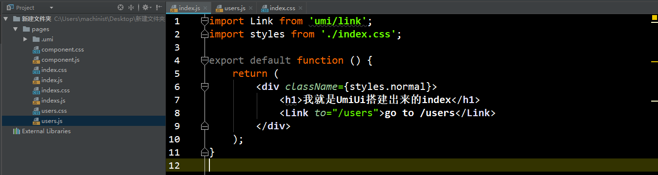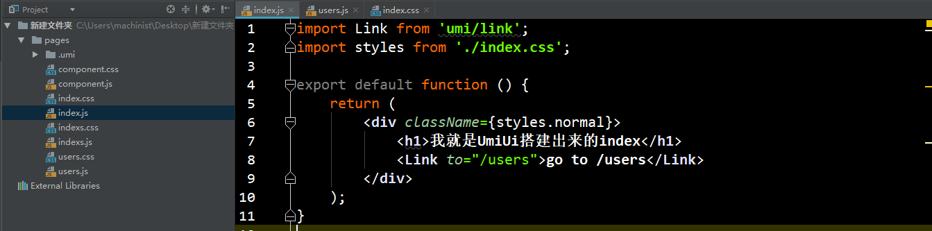 插一句,到这里有可能有些人会报错'umi' 不是内部或外部命令,也不是可运行的程序 或批处理文件或umi: command not found;