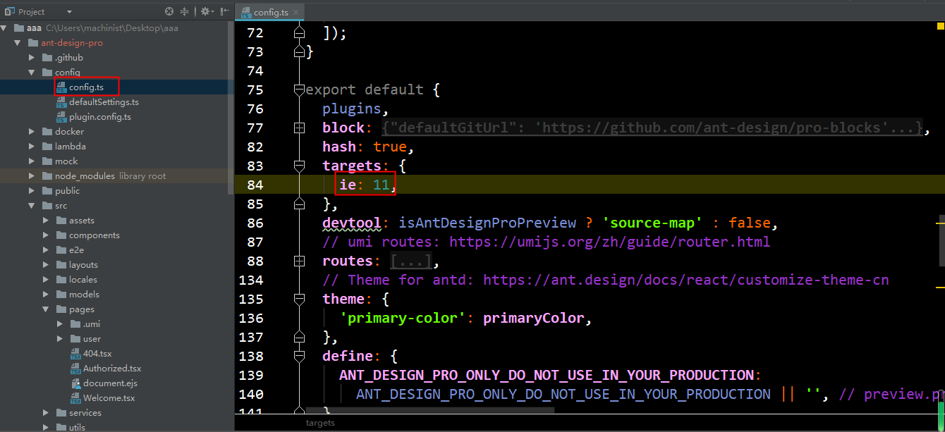 Ant Design Pro 项目的目录以及应用我就不介绍了,还不知道的就百度下吧。在多说就没有意思了。