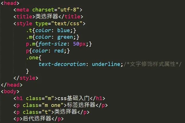 以html标签作为选择器设置样式,那么使用该标签的内容都将引用该样式
