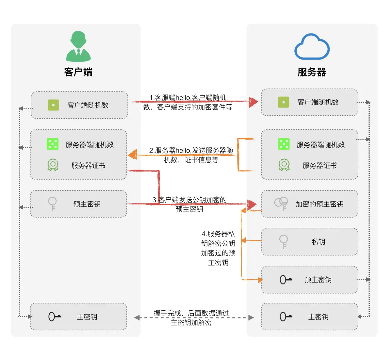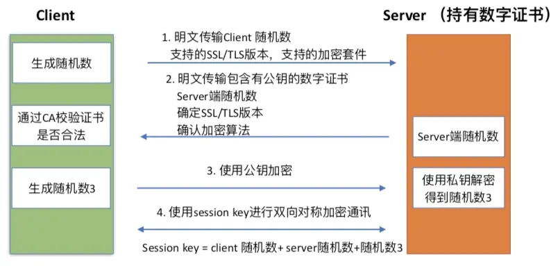 非对称加密速度远远慢与对称加密,无法在之后的整个通信中使用非对称加密;- 如果使用服务器中保存的公钥和私有进行非对称加密,因为如果客户端使用公钥加密,只有服务端私有才可解密;如果在服务端使用私钥加密,则任何拥有公钥的人都可解密,没有安全可言。