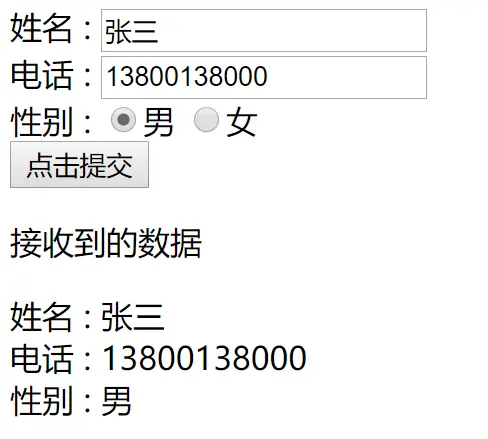<div><label>电话 : <input type="text" name="phone"></label></div>