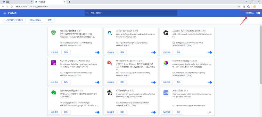打开 Chrome 设置界面,再打开扩展程序界面;