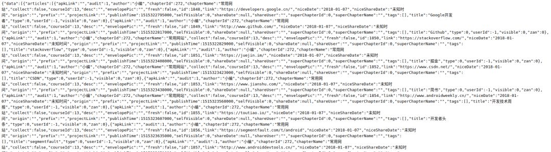 我们在查看 api 接口响应时,一般都是 json 格式,在没有安装 Json-Handle 的情况下,使用 Chrome 查看全是乱的,像这样:
