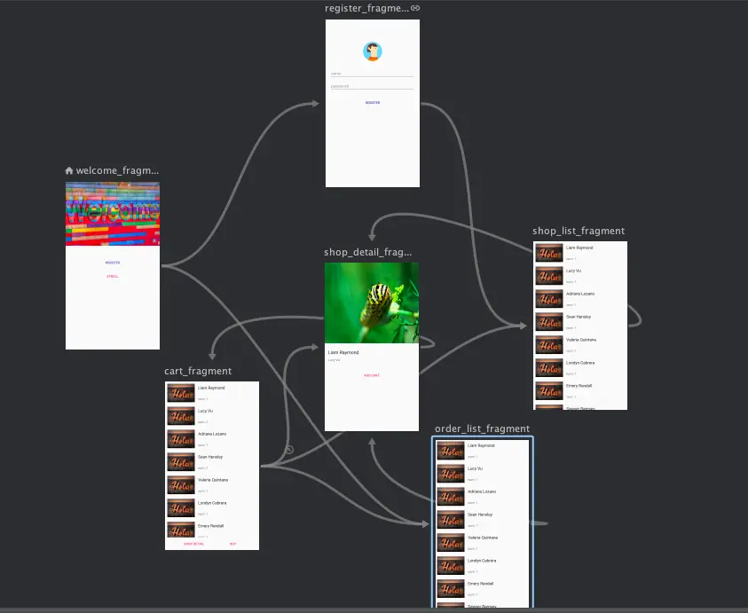 在我的Demo中打开nav_graph.xml你将清晰的看到它们页面间的关系纽带