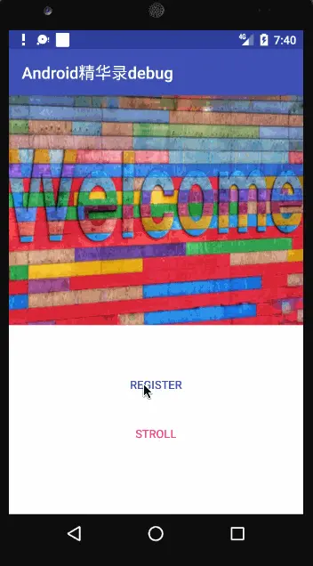 此时如果我们直接运行程序后发现已经可以看到入口页面WelcomeFragment