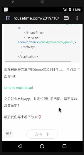 我们回想一下对于多个Activity我需要实现deepLink效果,应该都是在AndroidManifest.xml中进行配置scheme、host等。而对于单个Activity也需要实现类似的效果,Navigation也提供了对应的实现,而且操作更简单。
