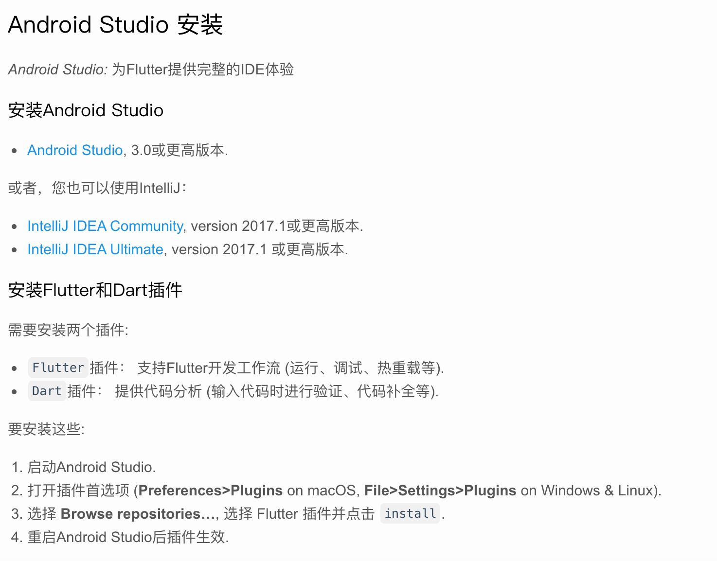 Flutter开发环境搭建android studio ,选择这款IDE是因为笔者是做安卓开发的,用习惯了该工具的快捷键,安装插件的步骤也熟悉。解决问题起来也容易察觉。