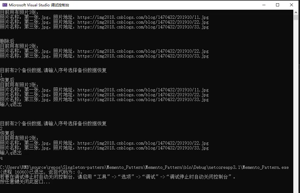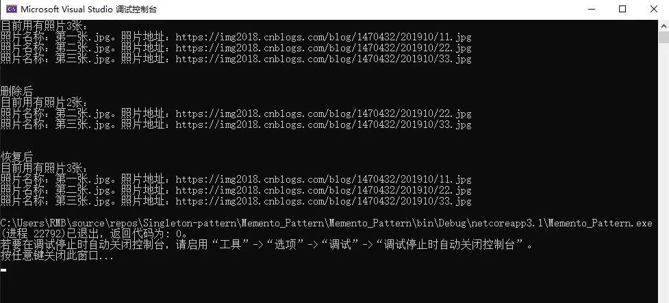 Console.WriteLine($"目前有{mementoManagers.mementoList.Count}个备份数据,请输入序号选择备份数据恢复");