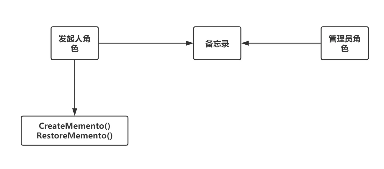 管理员:负责保存备忘录对象、负责备忘录对象、使其不能被其他对象进行访问及操作。