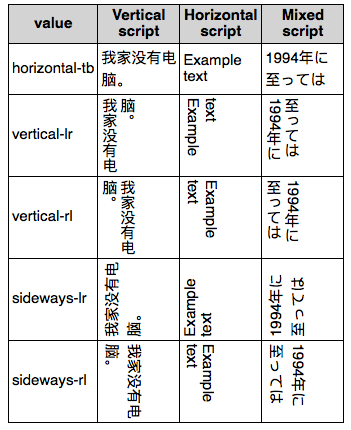 writing-mode : horizontal-tb;//默认:水平方向,从上到下