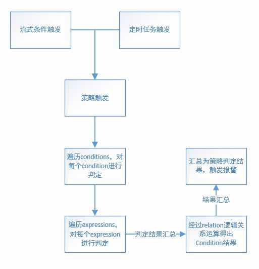 预警模块通过流式条件或定时任务触发对预警表达式的判定,过程如下