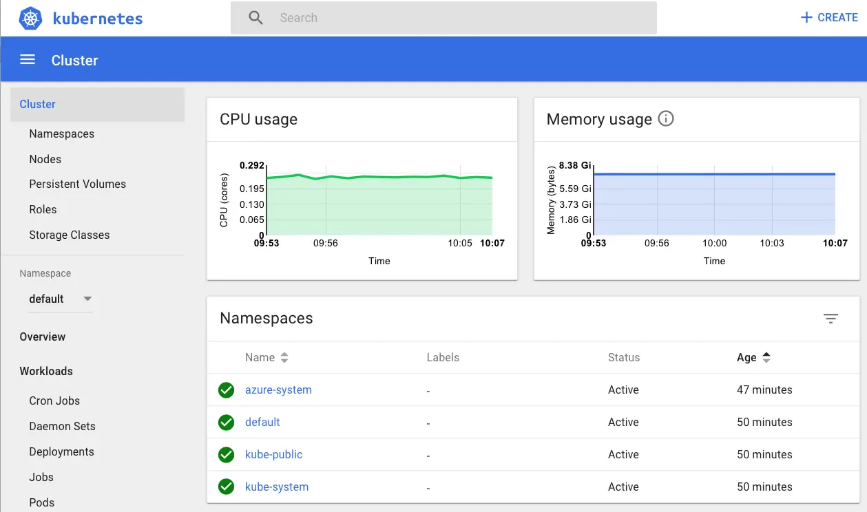 $ open 'http://localhost:8001/api/v1/namespaces/kube-system/services/kubernetes-dashboard/proxy/#!/overview?namespace=default'