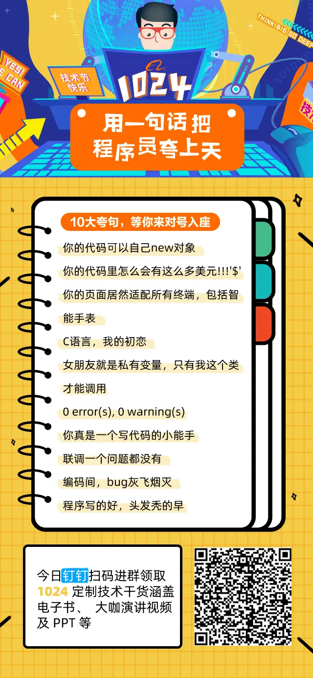 1024程序员节,你怎么过? DNing 2019-10-24 150 阅读1分钟 1024程序员快乐,怎么用一句话把程序员夸上天?涵盖夸Java、Python、PHP、前端、C++、Go等程序员10大夸句,快来对号座吧,还有1024定制大礼包,涵盖技术电子书、技术直播等。