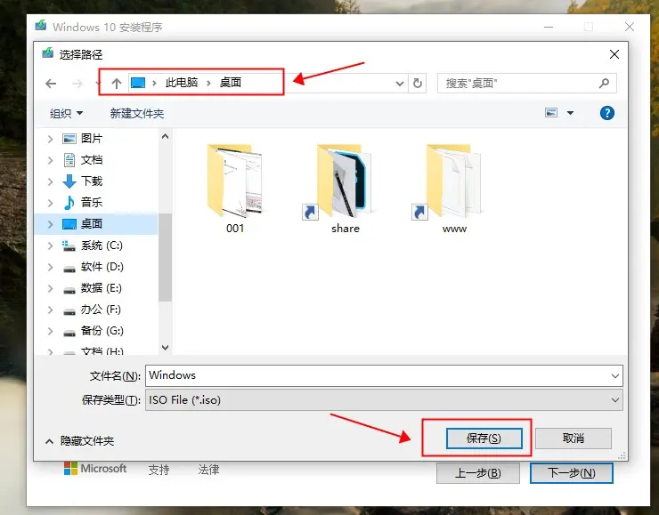 这一步会让你选择下载系统保存的位置,选择好之后点击“保存”(为了操作方便,我直接保存在桌面了)
