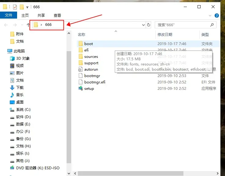 找到,你复制有win10镜像文件的文件夹,我的是“666”文件夹,点击“选择文件夹”