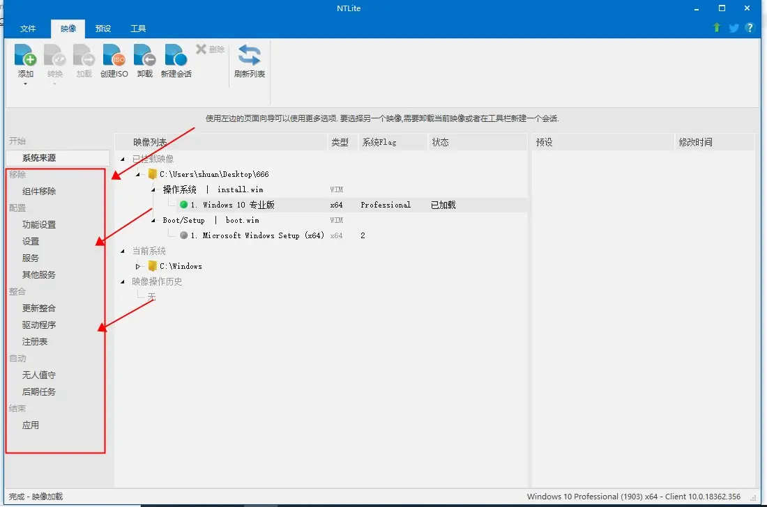 我喜欢专业版的,所以我只留了专业版,到这里我们只是去除了不需要的系统,下面我们开始对自己喜欢的系统进行更深度的精简,以便于我们更喜欢它。
